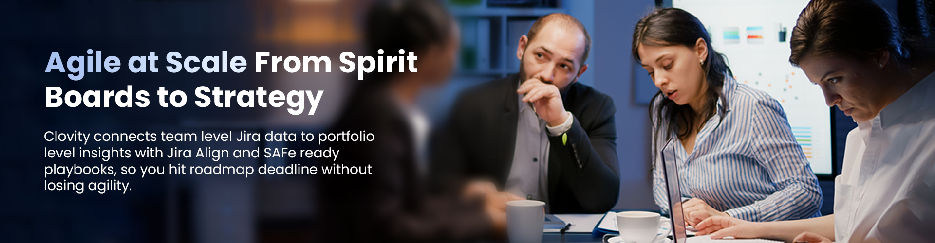 Clovity’s Platinum-certified Agile coaches connect team boards to portfolio goals with Jira Align, SAFe-ready playbooks and data-driven coaching-so releases ship on time, budgets stay on target and every sprint moves the strategy forward.